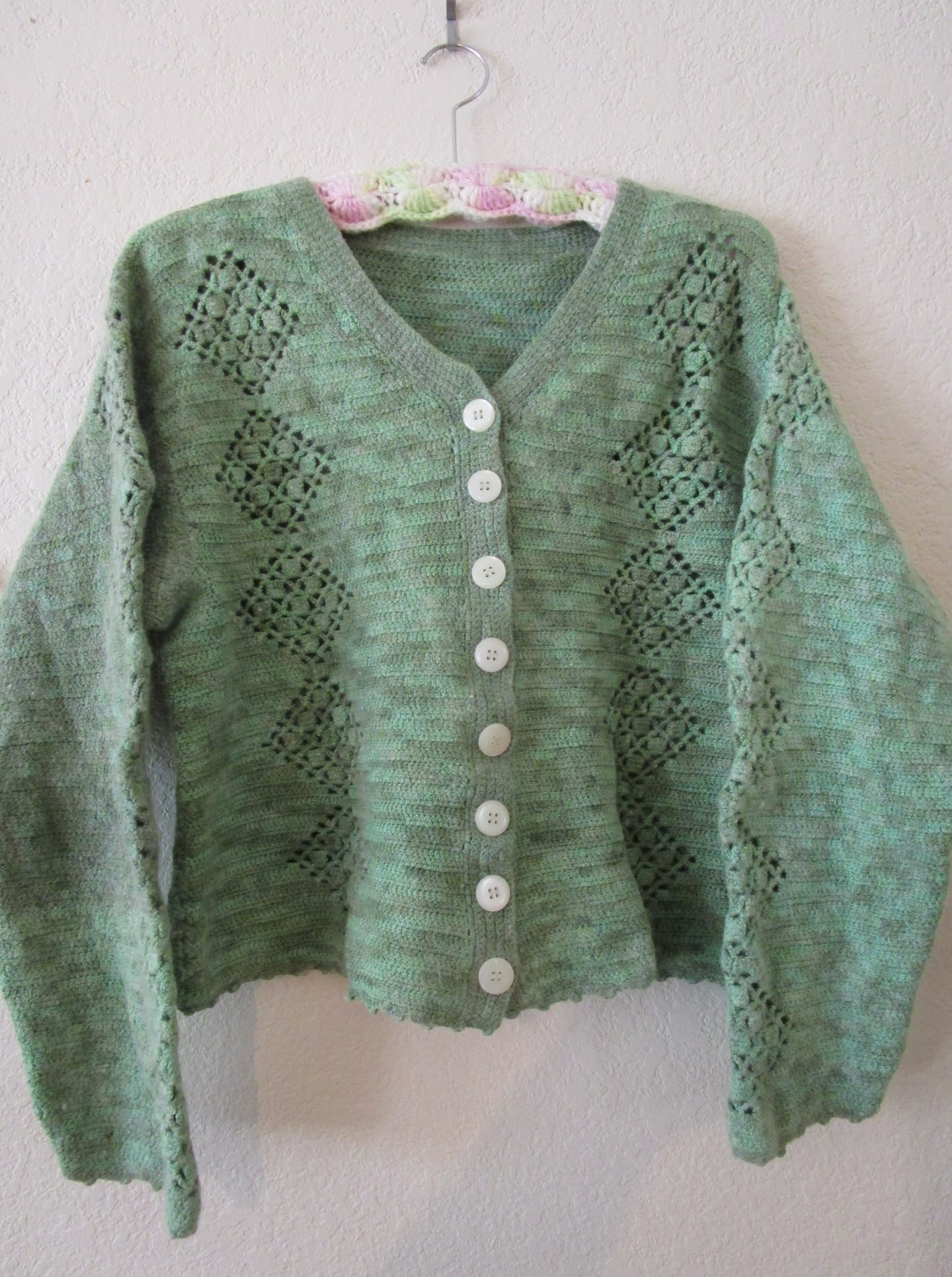 I dyed this silk / wool yarn. Another crafter made this sweater out of it.