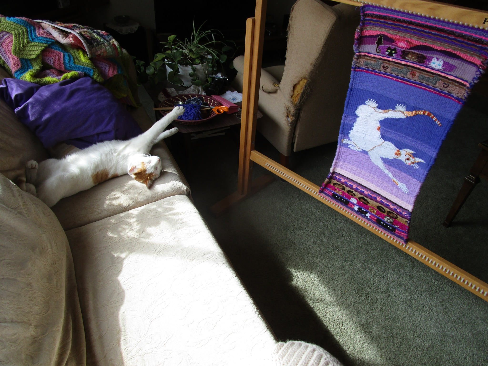 Some of my smaller woven items are made from my hand dyed yarns, but most of my weaving yarn is upcycled from waste fiber from local crocheters and knitters.