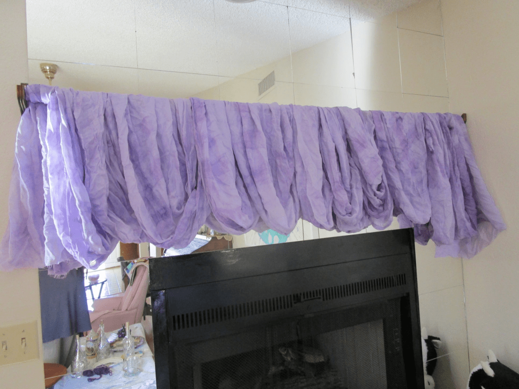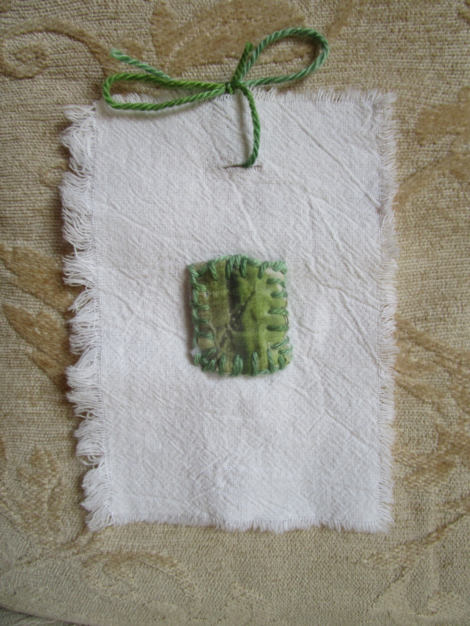 I hand dyed the blue fabrics and the yarns and ribbons I used to make this rune cloak.